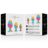 Libera il tuo lato selvaggio e goditi un piacere insolito con i set di plug anali Intense™. Questo audace set di tappi anali è fatto per divertirti con il brillante design tie-dye, la sonda conica arrotondata e la versatile base a ventosa per un gioco ancora più divertente. La sonda in silicone aumenta gradualmente la sua circonferenza per permetterti di godere di un gioco soddisfacente con un diametro da 2,7 cm a 4 cm.